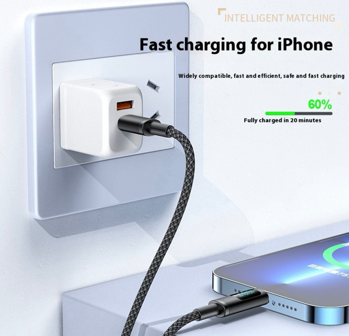 Digital Display Double Type USB-C Fast Charging Mobile Phone Cable